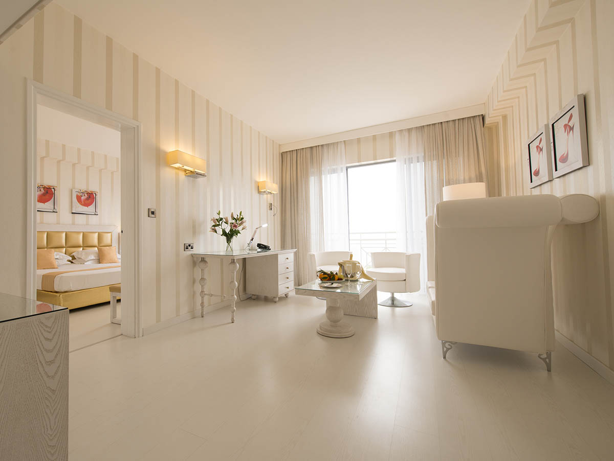 All you have to do is enjoy! Sited on 7 acres of land, one third of which are landscaped gardens, the hotel is bordered by rolling hills on the one side and the Mediterranean Sea with its magnificent sunsets on the other. Away from the mainstream tourism this location is perfect for those seeking rest and relaxation combined with Luxury. Within this 4-star hotel, our guests are provided with all the requirements for a carefree holiday in style. An impressive and beautiful lounge style 2 level atrium lobby, enclosed on one side by a glass curtain conservatory, offers a panoramic and relaxing view of the sea.